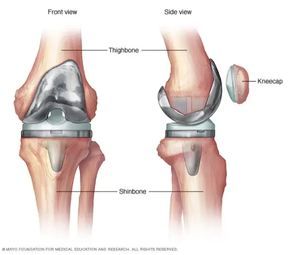 • Replacement: Artificial components (prosthesis/implants) made of metal, plastic, or ceramic are inserted to replace the removed parts.