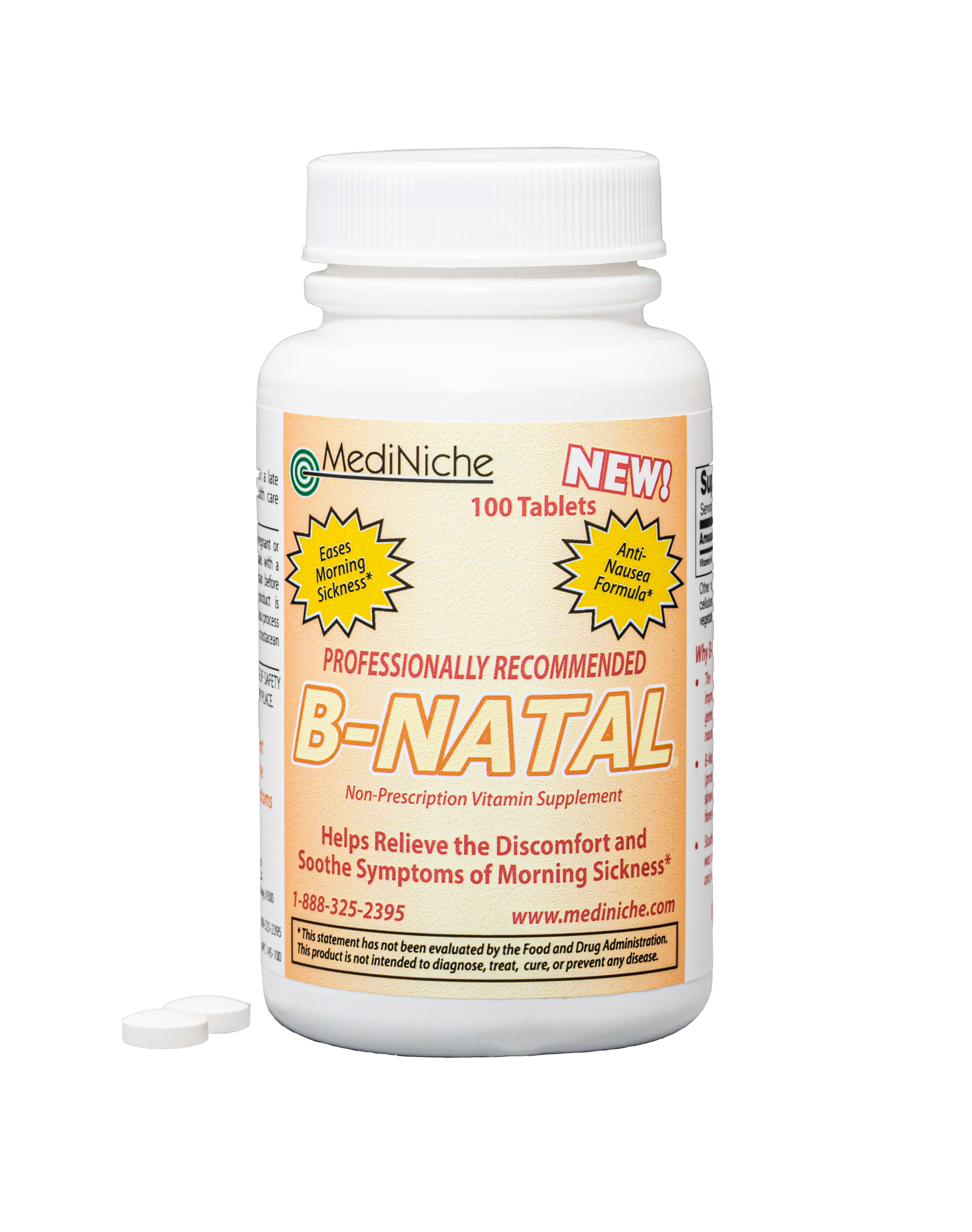 B-natal® is a non-prescription vitamin supplement that contains the medically recommended amount of vitamin B6 found to safely ease and relieve morning sickness associated with pregnancy*.